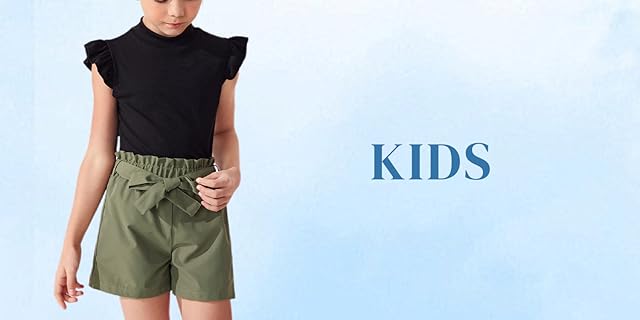 Girls 2 Piece Outfit Ruffle Trim Tee Top with Paperbag Waist Shorts Set