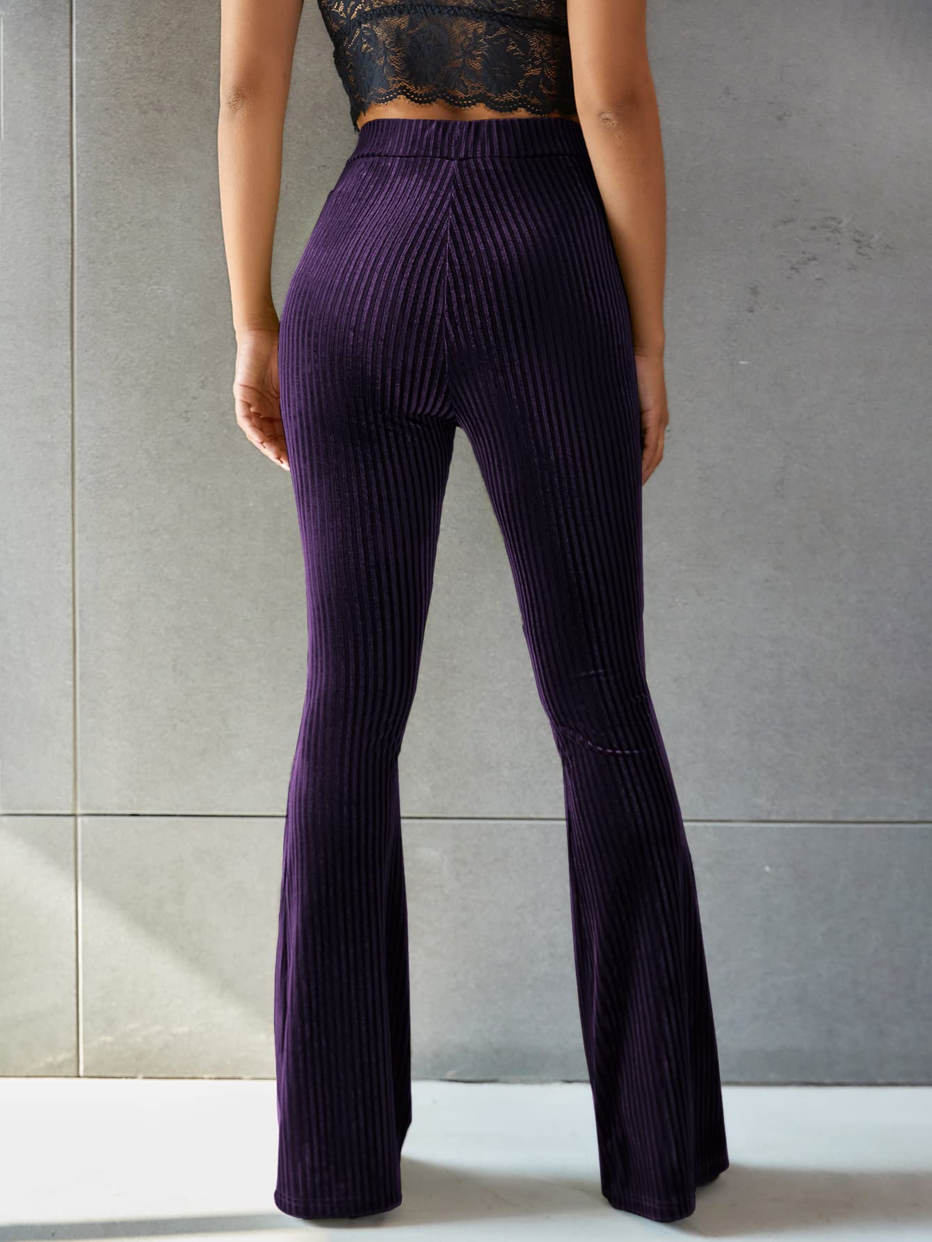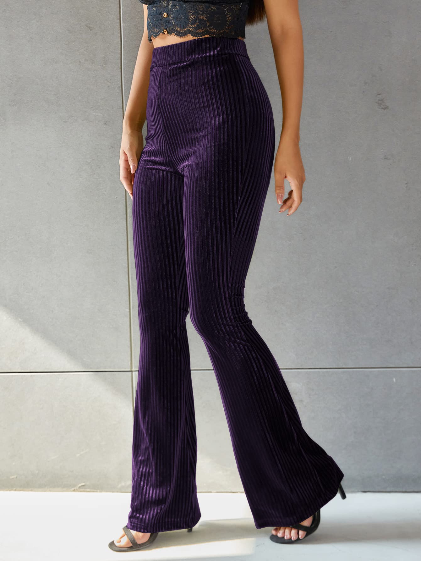 Bell-bottomed, Solid Color, Rib-Knit, Flare Leg, Velvet, Elastic Waist, High Waist